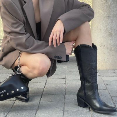 $125.900Bota Lusitana color negro con aplicaciones en richato negro ,alucinante! Un espectáculo de bota.