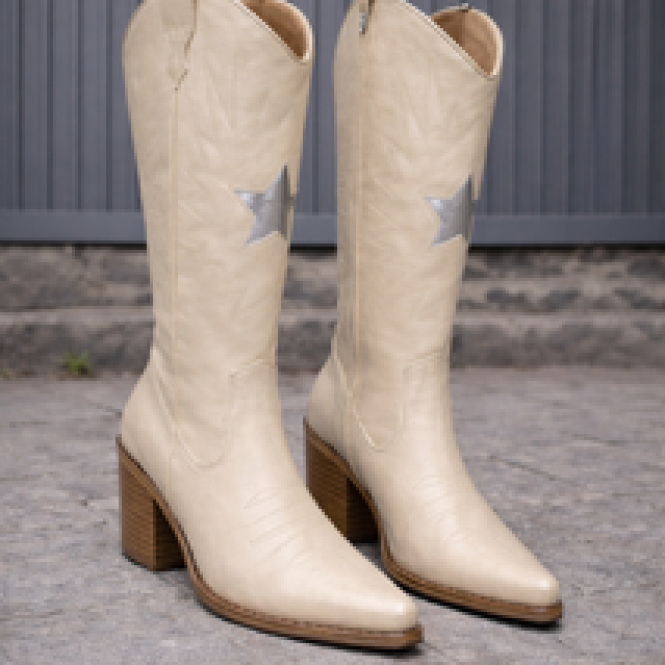 Esta bota de caña alta en tono café es la mezcla perfecta entre elegancia y actitud. Su acabado en cuero suave resalta su calidad, mientras que los bordados estilo western y la estrella aportan ese toque auténtico que eleva cualquier look. De diseño estilizado y punta fina, alarga visualmente la silueta, y su tacón de 7 cm entrega altura con total comodidad. Además, cuenta con cierre lateral para un calce fácil y práctico. Versátil, atemporal y con personalidad…