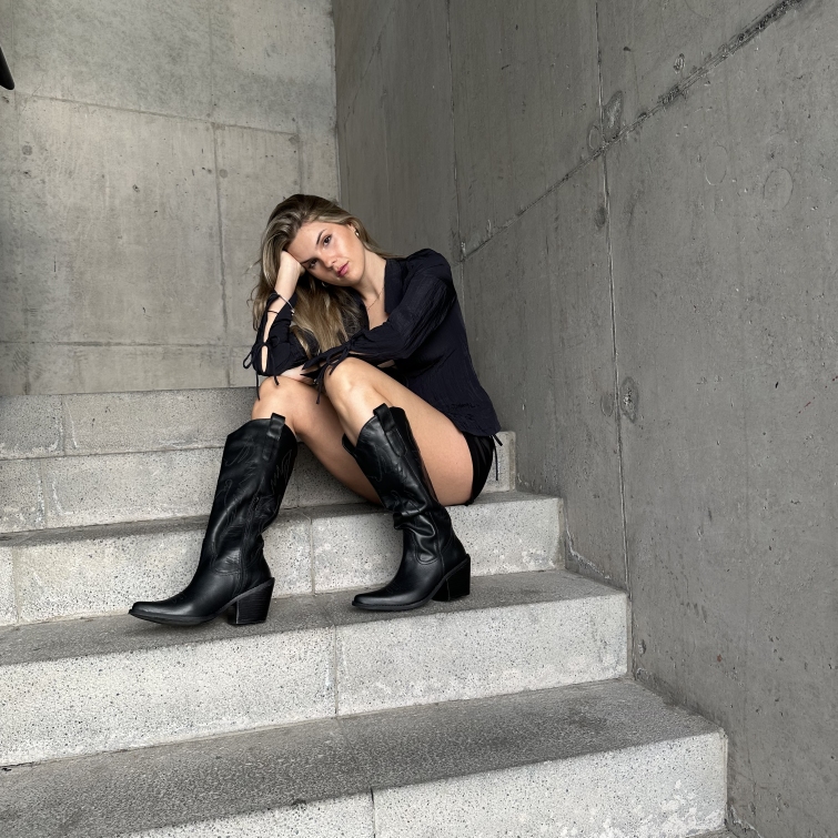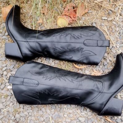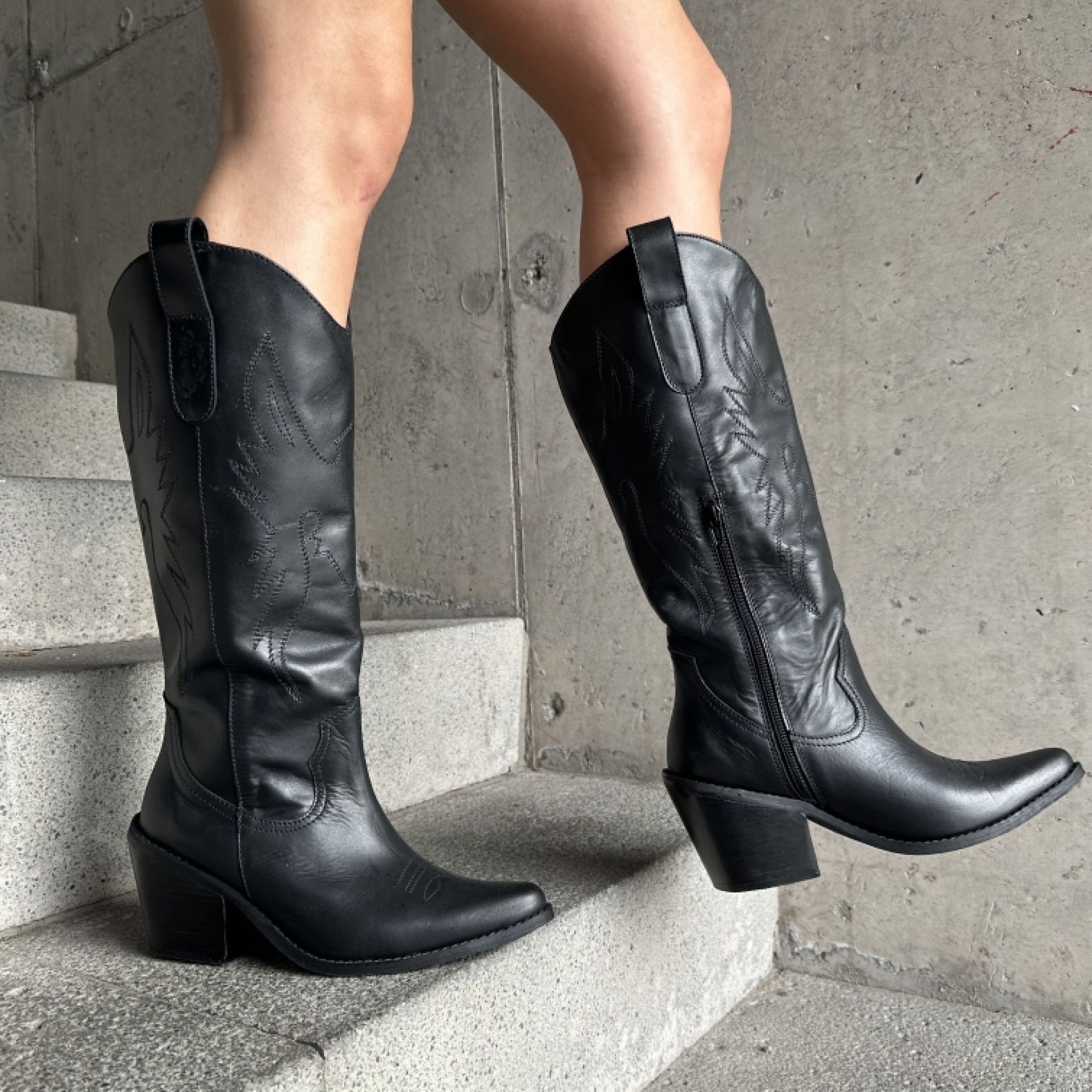 impactante bota texana modelo clasico en tamaño extra large,39 cm de largo y 8 cm de taco, hara que robes las miradas! 100% cuero por dentro y fuera, detalles de bordados en hilo negro.