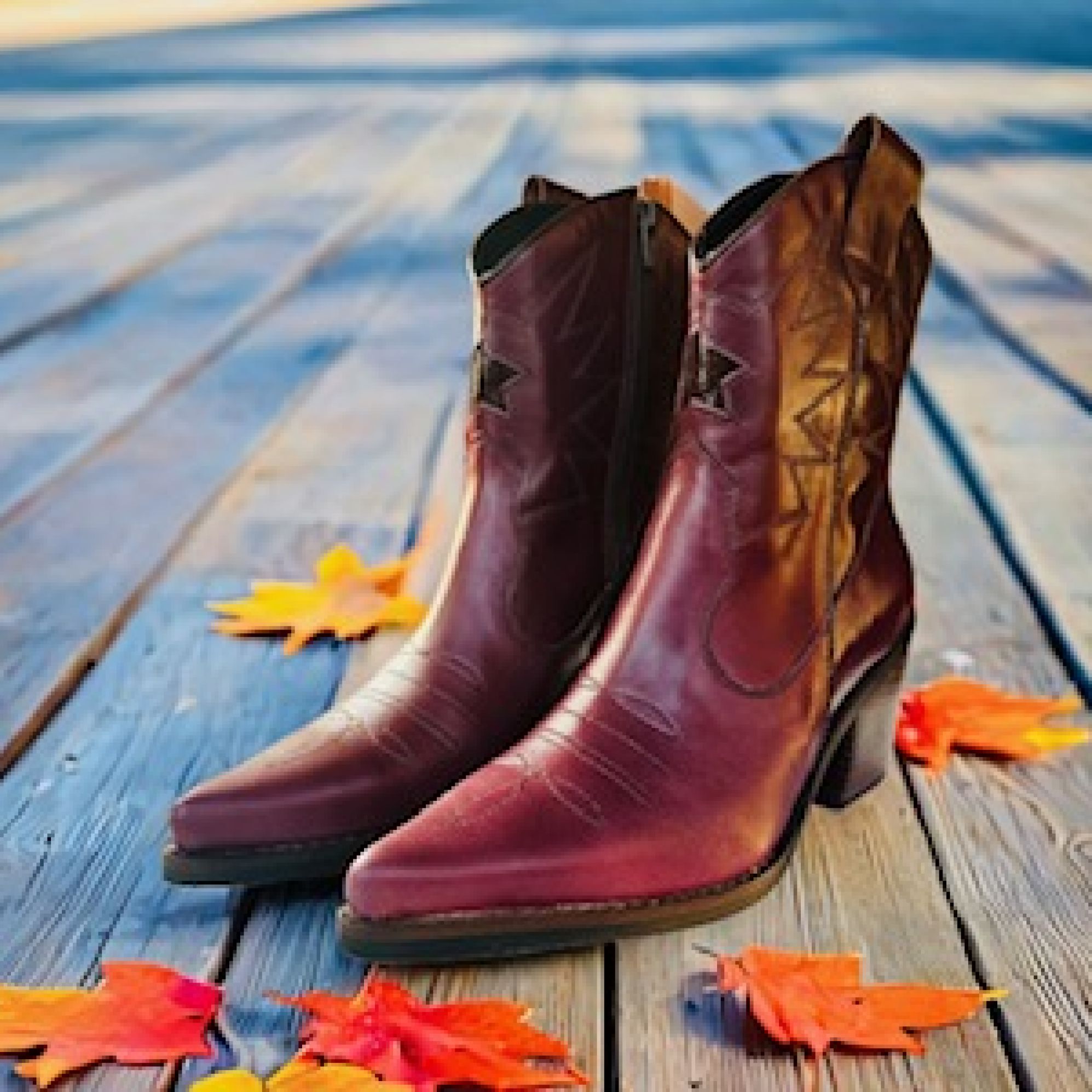 Botin Lusitano color burdeo, un botín muy elegante y estilizado por su corte vaquero, detalles y aplicaciones en cuero richato (charol) burdeo, bordados y estrella burdeo